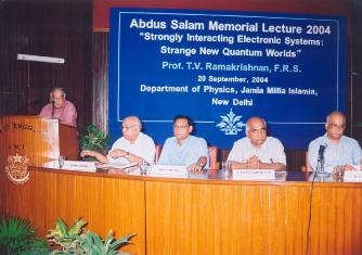 having opportunities to remain first-rate scientists. The Abdus Salam Memorial Lecture, started by the Department of Physics, Jamia Millia Islamia, New Delhi, tries to perpetuate the ideas that Salam believed in; namely the need for developing countries to encourage education and research in the fundamantal sciences. An eminent person of science is invited each year to deliver this lecture. The style and content of the lectures is such as to inspire and to convey the excitement of new discoveries, ideas and challenges. |